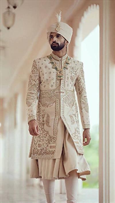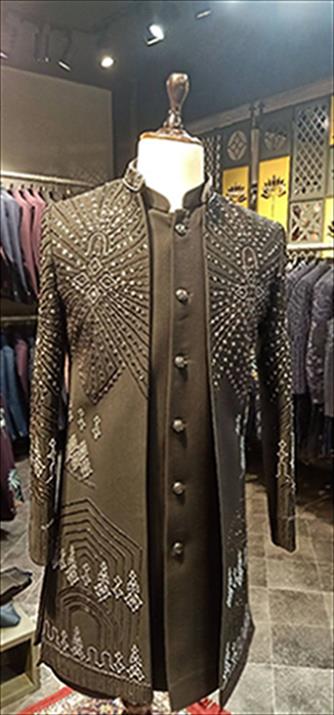 917 chiku hand work sherwani