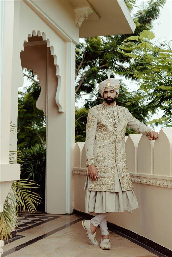 916 chiku hand work sherwani