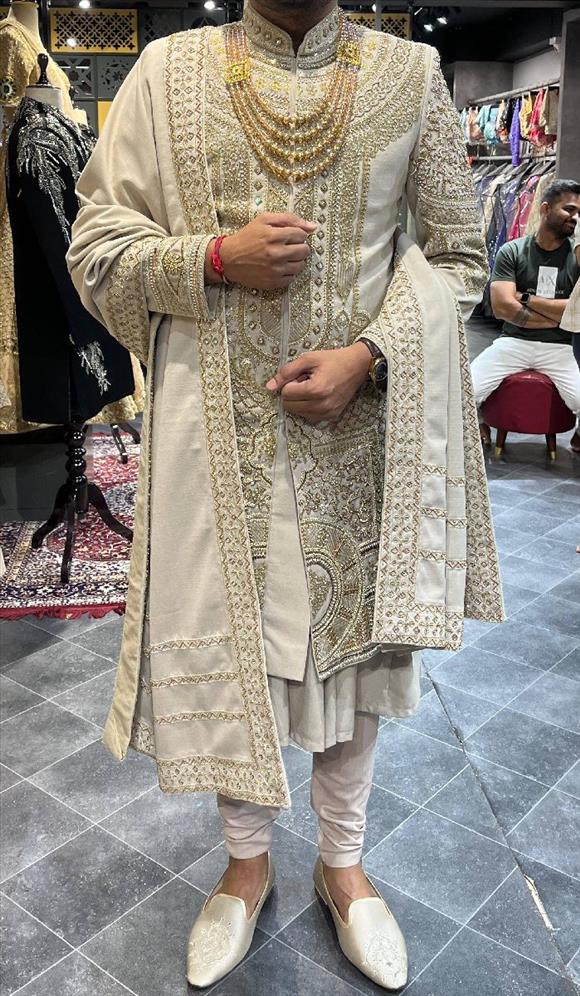 910 chiku hand work sherwani