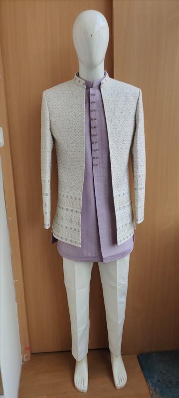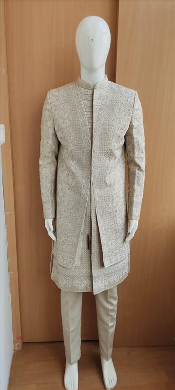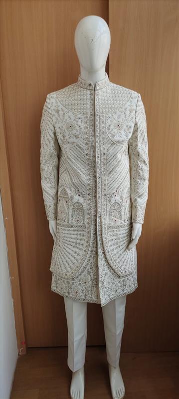 8162 NEW HEAVY WORK BELT OFF WHITE SHERWANI